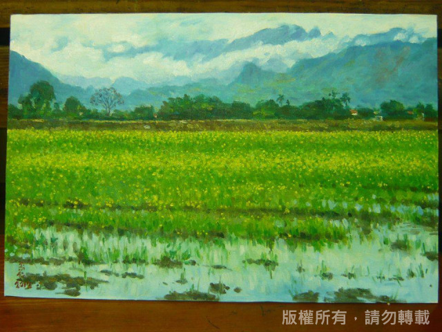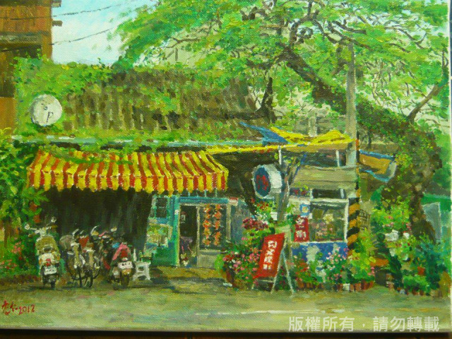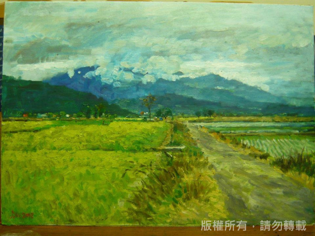 依著感覺,以景物寫生為主,風景、人物、靜物都有。