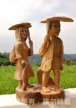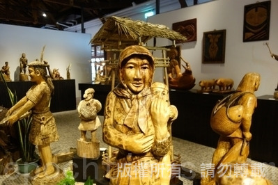 以傳統原住民阿美族的木雕操作工法,粗獷與細緻刀法相互運用,除了透過技巧性的雕刻外,也必須賦予作品故事性,所以每個作品的樣貌、動作、服飾與主題的安排,都是互相串聯相關的,更隱含了部落文化的精神與意義在其中。