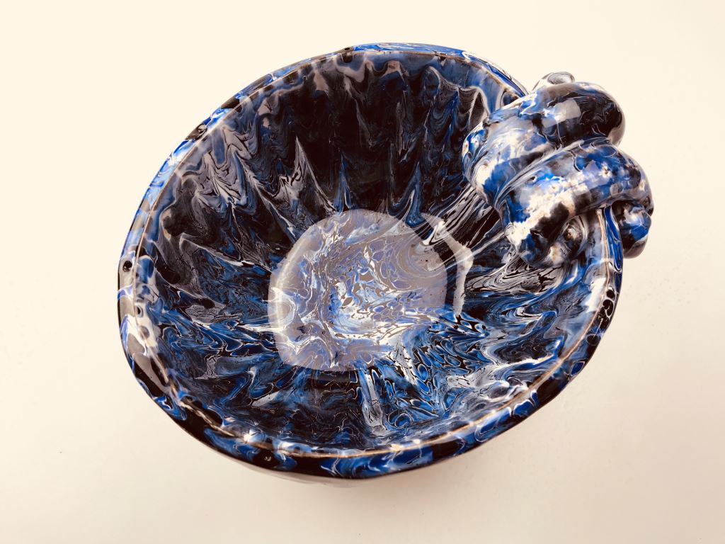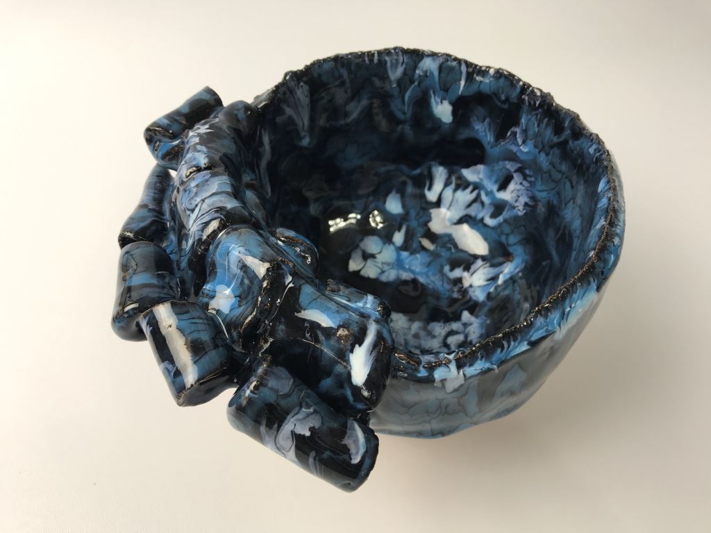 作品主要以視覺印象手法呈現,創作媒材涵蓋繪畫、陶藝、雕塑、裝置藝術、複合媒材以及科技藝術等方式,並結合生命、物種、時節、氣候、環境生活等跨領域主題,反映現代至未來的意象形態。