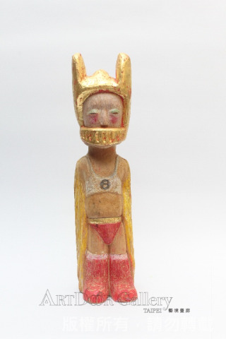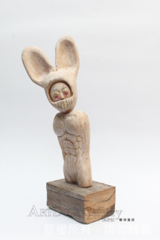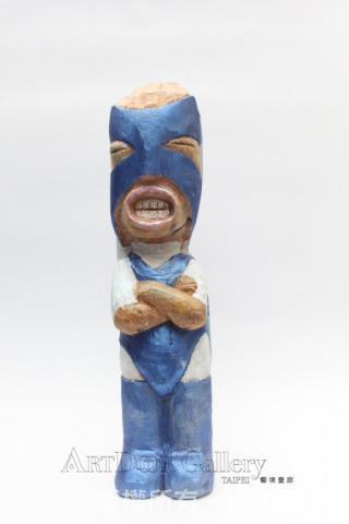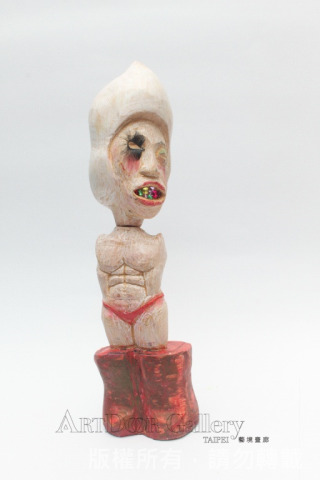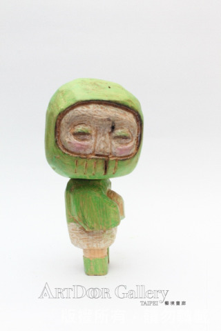 翅男本來是我寫的劇本裡頭的一個人物。在現實生活中苦悶的活著,一回,向上天祈求翅膀,以雙手換之。老天爺允諾,卻換來不能飛的翅膀。……後來發現,原來翅男是現實世界中,自我的投射。透過投射的過程,好像更能夠接近某種真實,於是,開啟了一系列的翅男創作。 翅男試圖回到文化的、生活中、故事裡頭的世界。爲了和現實生活的人們取得聯繫。翅男的木雕,是想以自己當起點,試著凸顯人們在現實生活中的處境。