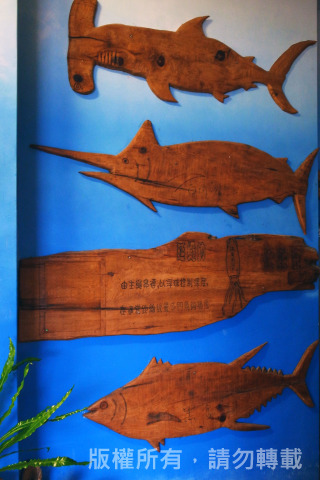 海洋是很美也很殘酷的,很美的面貌在那美麗的鯨豚和豐收的漁獲,殘酷的一面則是冬天和颱風前後面對大浪在海上漂泊船隻的船長,需要勇氣。創作這些海洋動物都是隨性發揮,透過平常在海上看到這些動物的樣貌來切割,許多人說刻得很傳神是因為我們討海人的這些動物的關係非常緊密,好的觀察力才能讓我們持續生活下去,鬼頭刀、旗魚都是我們面對大海的收穫。