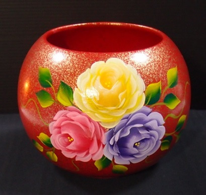 色彩可以撫慰、安定人的情緒,透過彩繪技術與複合媒材的創作, 及運用色彩改變居家氛圍,提升生活品質。創作過程中發現花系列圖案最能表現色系變化;線條的延伸表現了植物堅韌的生命力,所以創作作品大多以花系列為主。