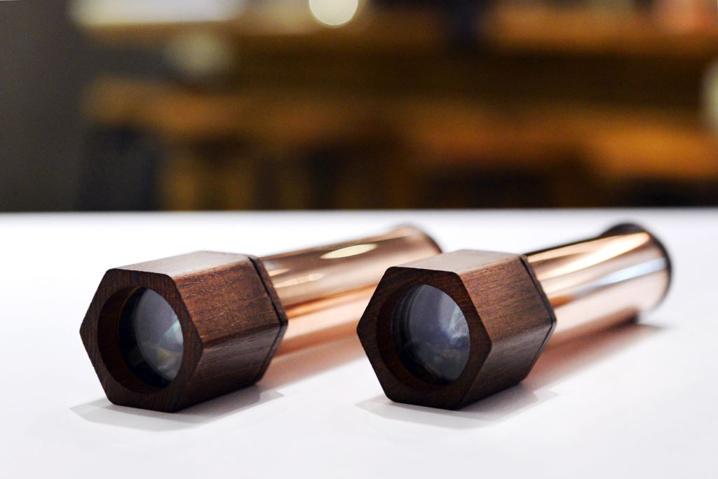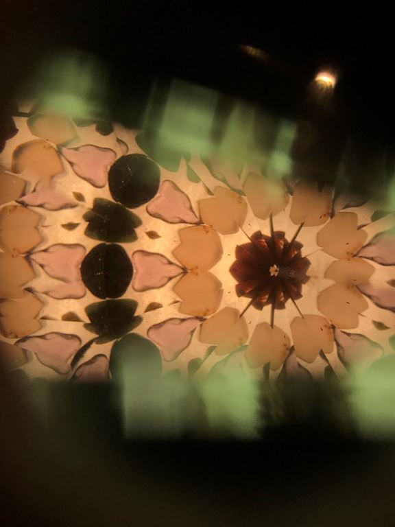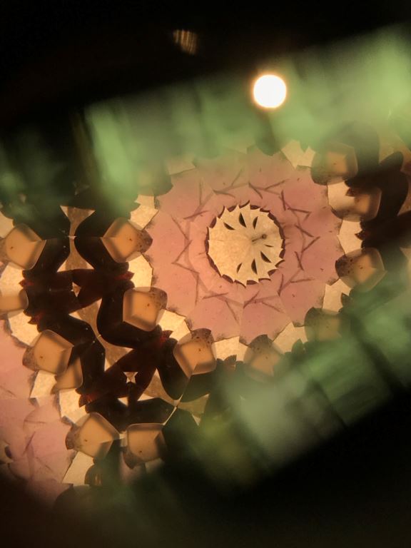 將加工後剩餘的碎小玉石與與光結合,收納在萬花筒裡,呈現繽紛美感。