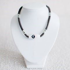 由單顆圖騰手工燒製琉璃珠+主珠尺寸約1.5公分、4顆琉璃配件珠,仿皮革繩編而成可由後側伸縮調節長度每一個圖騰都代表不同的意義祖靈之眼-祖靈的守護, 喜悅之珠-象徵貓頭鷹的眼睛,能看到貓頭鷹的眼睛代表好事降臨;火焰之珠-:突破萬難;太魯閣之歌-熱情、慷慨;太陽之珠-長輩的關愛與祝福;勇士之珠-全勝而歸,勇往直前;羽化之珠-象徵孔雀的羽毛守護愛情與尊貴之意;希望花園:帶來希望的花朵。