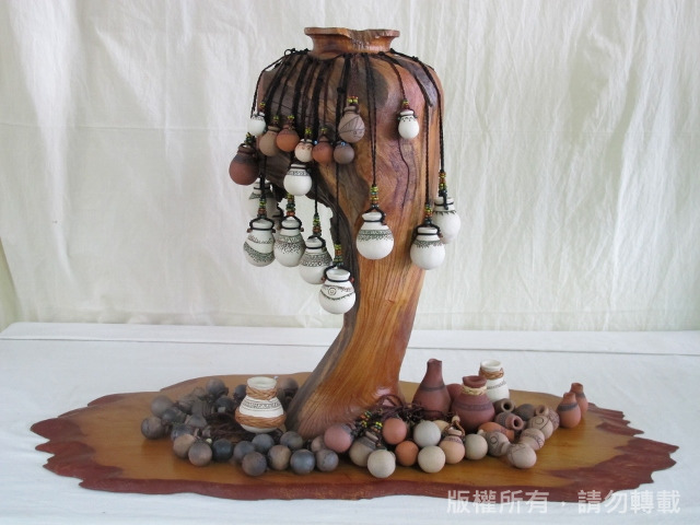 而近幾年創作方向朝家飾裝飾品、生活器具等研發產品,做出精緻、有品味的原住民文創產物。