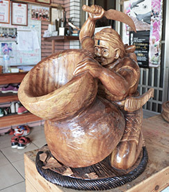 在雕刻的過程中,最難的就是如何表現出山豬的眼神及桀傲不馴、目空一切的野性,經過許久的嘗試與揣摩,包括野豬的形體、個性、毛髮、牙齒等,肯恩基武茂已能得心應手的呈現在木雕的作品中