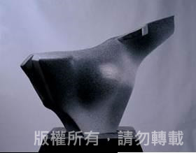 以石頭材質,厚重純樸,結合鄉土題材呈現直接而誠摯的情感,作品造型追求簡約線條與量塊,突顯水牛雄偉體態。