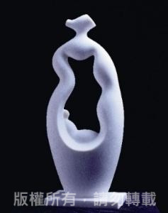 以具象的手法、律動的線條表現母與子心心相連、生命與共的依存關係,簡潔、純淨,視覺的極致享受。
