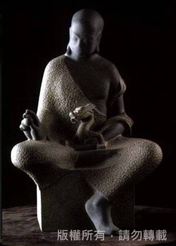 創作靈感來源是透過捏陶,通常在我的腦海裡沒有固定的形象,但是透過陶土始終可以開啟創作的靈感。佛像是大部分石雕家在創作時,經常會選擇的題材,或許是應付生活上的需求,但也可能只是單純的喜愛。我在年輕時就與佛家結緣,「我是先吃素,後來學佛,因為古時候石窟裡有許多佛像,所以佛像自然而然就是我比較喜歡去挑戰的一個方向」,有別於佛像創作,我還有許多關於生活週遭事物的體會,及童趣的想法來表現創作,在每個時期的歷練中,不斷的透過思考、實踐及再突破,來提升自我對於藝術創作的期待。