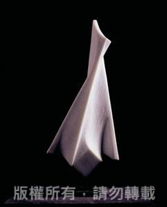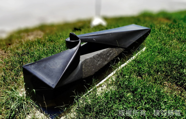作品「重力下的擺盪」/ 運用布紋的張力表現向下的重力,以扭轉的方體呈現在重力下的另一種省思,傳達對壓力釋放的一種覺知。