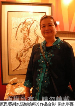 我的創作一向使用自然素材來表現,樹皮這素材我非常喜歡。因為捶打之後會出現意想不到的網狀變化又有透光性,輕穎又粗獷,樹皮最美的地方就在布裡的纖維,所以我以纖維延伸的感覺循著它的紋路與肌理來表現及構圖,真的是很特別,每次做、每次看,都有不同的感覺。2005年之後,我舉辦了複合媒材的個展,之後我就開始思考轉型的面向,因為做複合媒材已經有些累了,而且開始感到無趣,差不多經過兩年,我思考了下一步的走向,可是也是很痛苦,因為要轉型也勢必經過一段陣痛期。結果有一次機會,一個好朋友去台東史前館,去上纖維藝術之類的課程,剛好有樹皮這一堂課,他們成果展的時候我去看,我覺得相當不錯。樹皮,這是阿美族老人家早期用來製作衣服、帽子的材料,非常生活化。元素是一種族群文化,但我將它視為藝術創作的媒材,以前老人家剪樹皮都剪得很厚,為了防風防雨來求溫暖,但我們這一輩已經有所改變了。後來我就開始實驗各種不同的方式,厚的或薄的,包括搥樹皮的方式。經過兩年多的時間,差不多有所掌握,我就把這部分的精華傳授出去,讓有興趣的人能快點試試看。