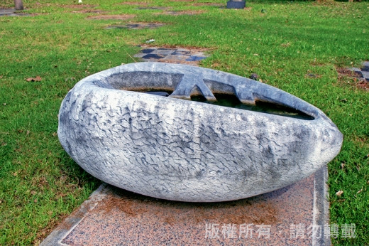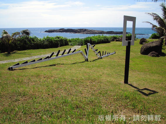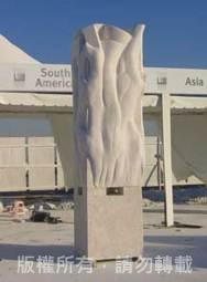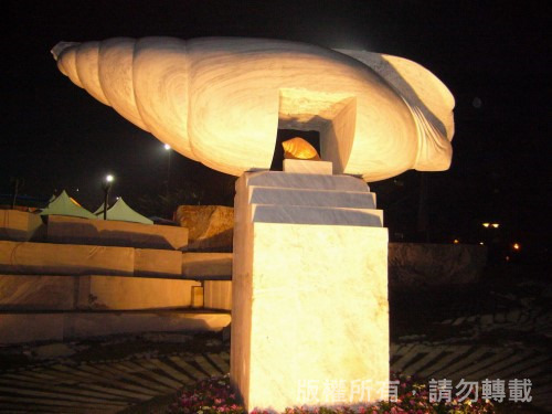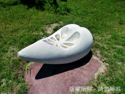 作品「看見海螺的風景」/以宗教傳法的聖器-海螺為主體結構,大小海螺象徵知識的誕生、展延和傳承。鏤空的切口是望向風景的視窗,想望著教育的理想和校園藝術氛圍,穩固的T型代表教育是萬事的根本,階梯則是知識的累積和文明的躍升。