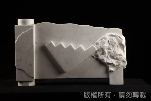 作品「時間的潛行」/時間的概念自古至今困惑著人類的心靈,藝術家無法超越光速讓時間倒流,甚或乘著時光機回到未來。所以他只能結合雕刻、攝影、繪畫等技藝與媒材,試圖捕捉時間潛行的印記和腳步,讓年過中年的生命能從中回味往事和憧憬未來,並和觀賞者一併探究時間的玄機和意趣。