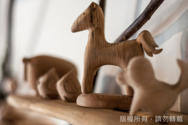 依循著木料的天然外形下刀,輪廓線看似簡單,卻精練達意,展現各自的氣質和個性。珍惜木料的每分每寸,有時完成一件作品後,看著剩下的木料,等那靈光一閃,幾刀後又是另一件作品。