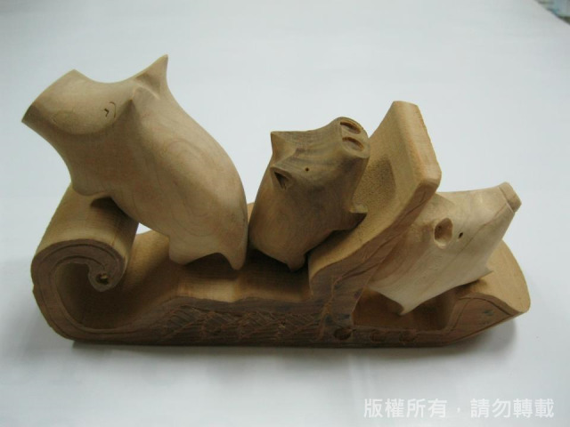 當初創作的初衷是為了鼓勵愛畫畫的女兒,將其手繪的動物草圖變成真實的掌中木雕實物,一刀一刀刻劃出對女兒的愛,但也創作出另一片的幻想天地。